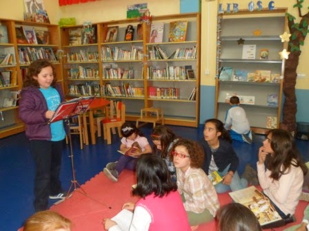La estanteria de libros con estrellas, se llenó de libros de poemas. cada niño/a elegía el que más le gustaba y leía. Otros lo traían ya seleccionado. Unos leían y otros escuchaban los poemas, disfrutando de las palabras, de la rima, de la musicalidad.