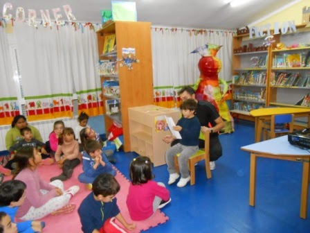 Los peques de la clase de 3 años A van cada miércoles a la Biblioteca y han disfrutado con "Los tres cerditos", "Caperucita Roja" y "Los siete cabritillos", representando además los cuentos con marionetas.