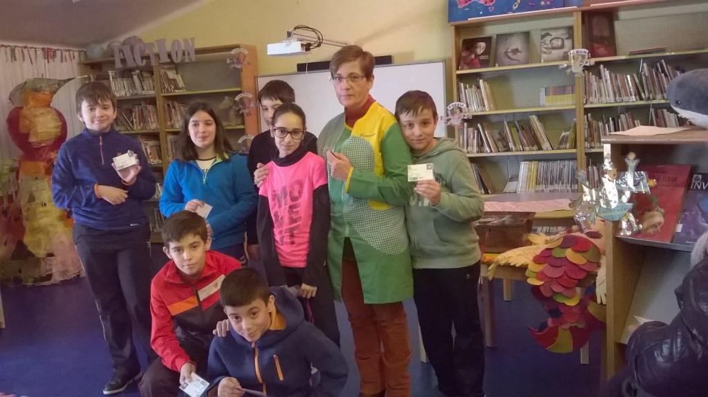 Los niños y niñas de 5º leyendo la contraseña antes de acceder a la biblioteca: